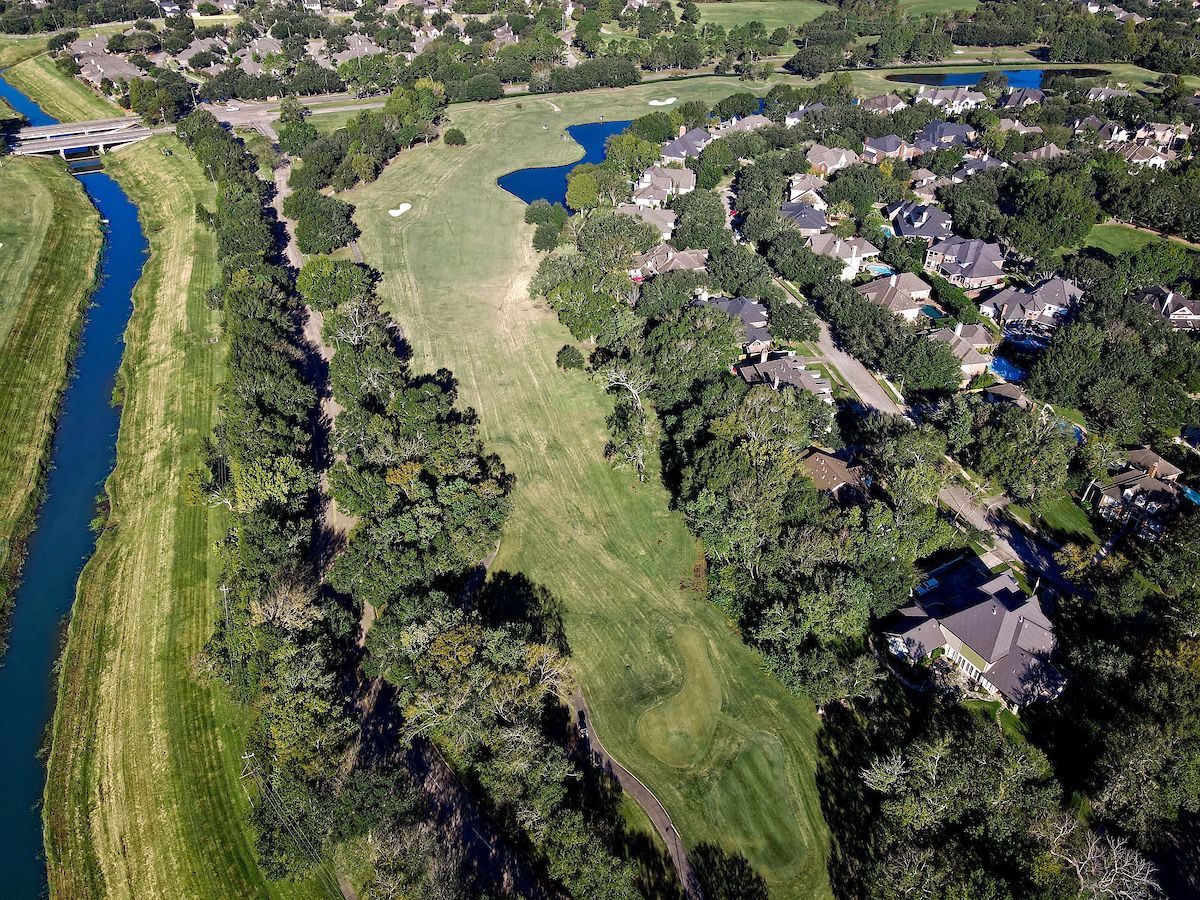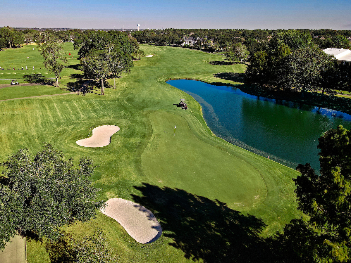 The final par 5 on the golf course is long, but open. The terrain is higher and rolling, so wind will tend to affect shots. Even if the water is avoided off the tee, it’s a three-shot hole with an elevated putting surface.