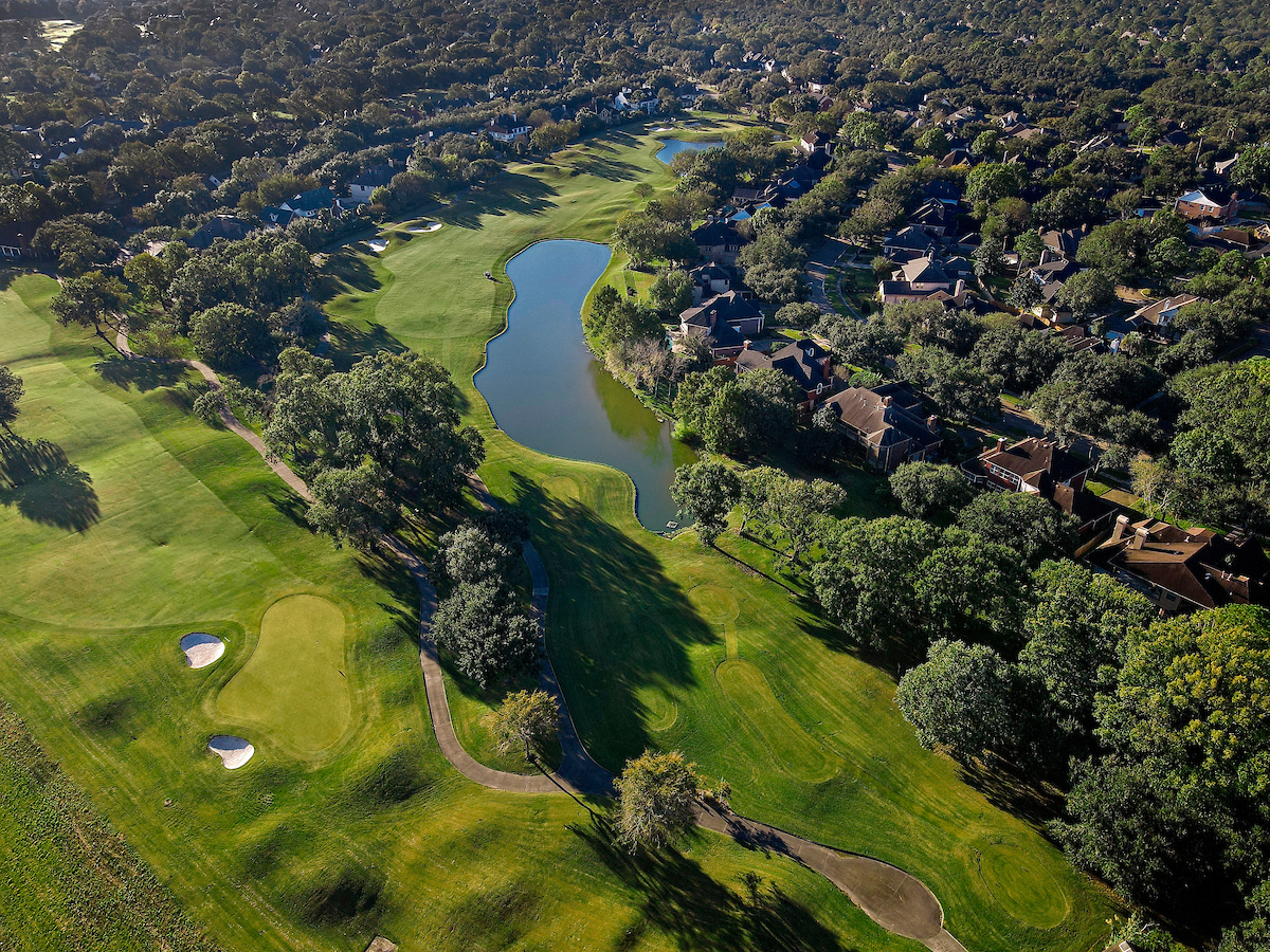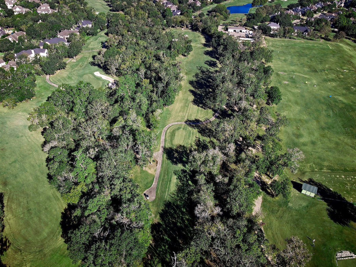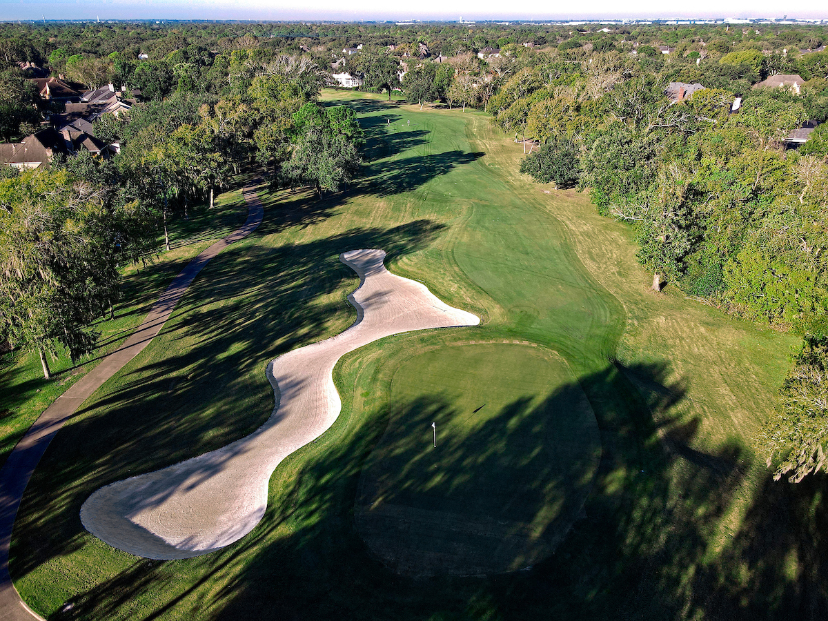 Mature oak trees and other hardwoods frame the par 3, 13th. The open wooded area has a charming park-like quality to this hole that provides an opportunity for a low score.