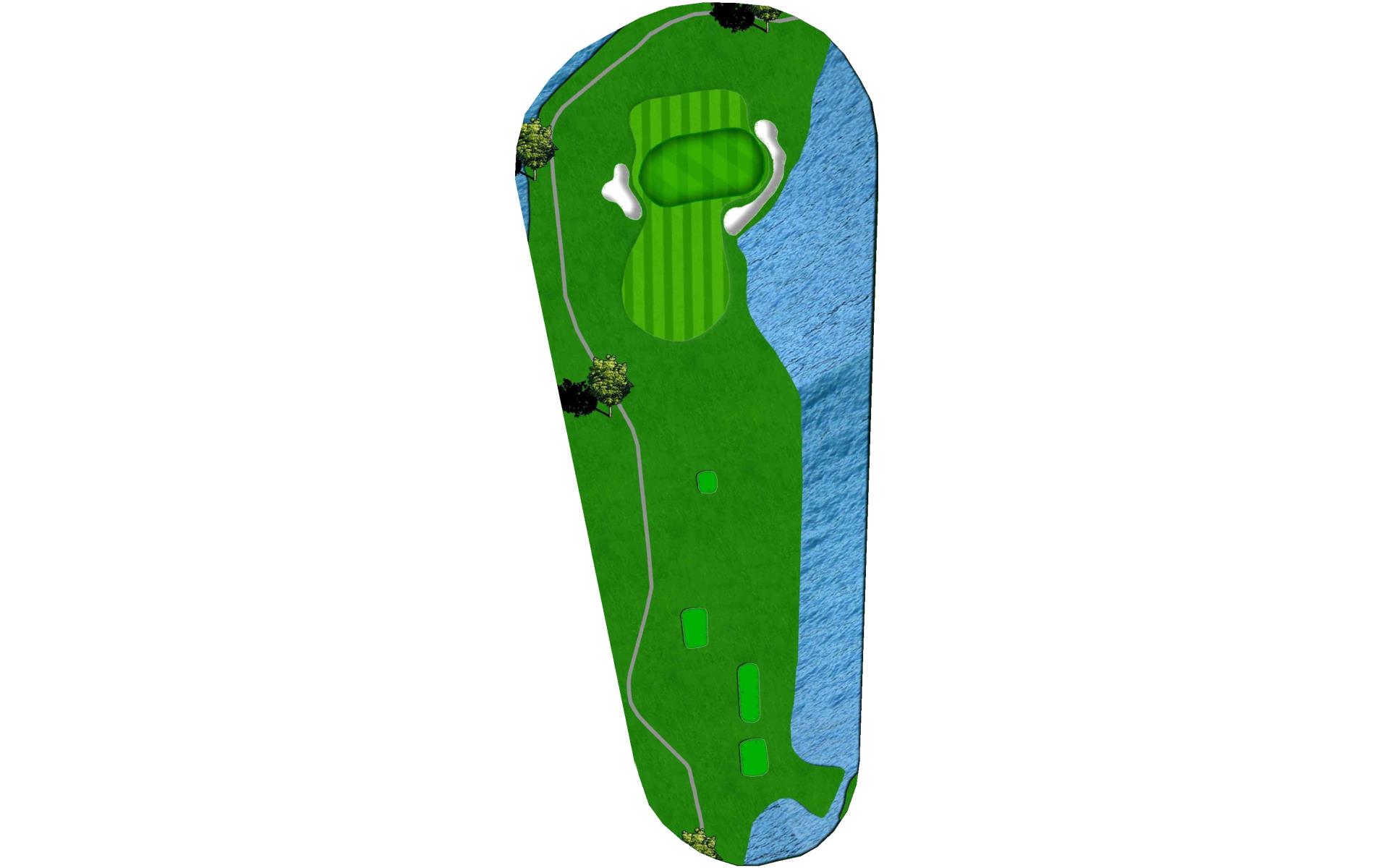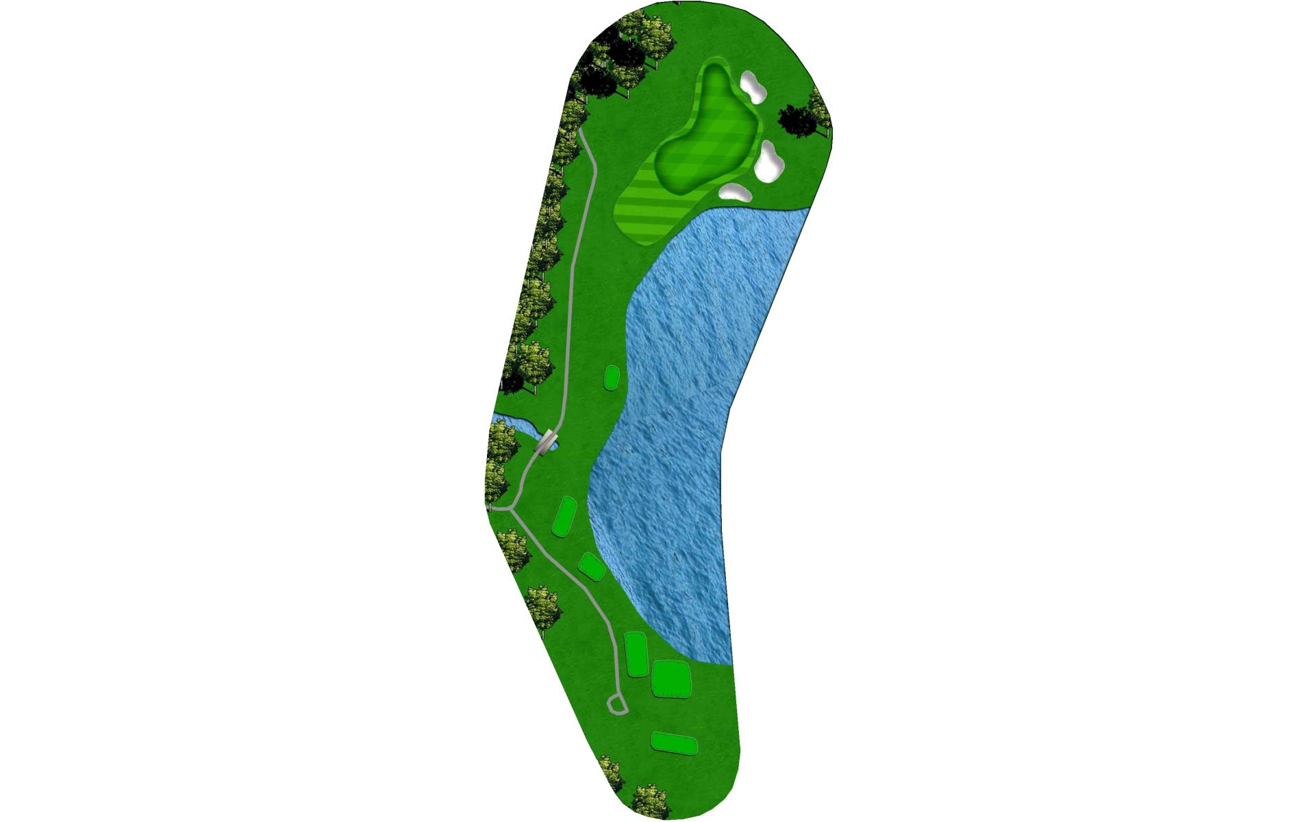 With water up the right side of this par 3 and bunkers both left and right of one of the smaller greens on the course, a birdie chance awaits the player who successfully navigates his/her shot the correct distance. A bit of a false front exists at the front of the green but once over the putting surface is relatively flat. Pay close attention to the wind direction on this hole as anything into a breeze will result in the shot falling short of the desired result.