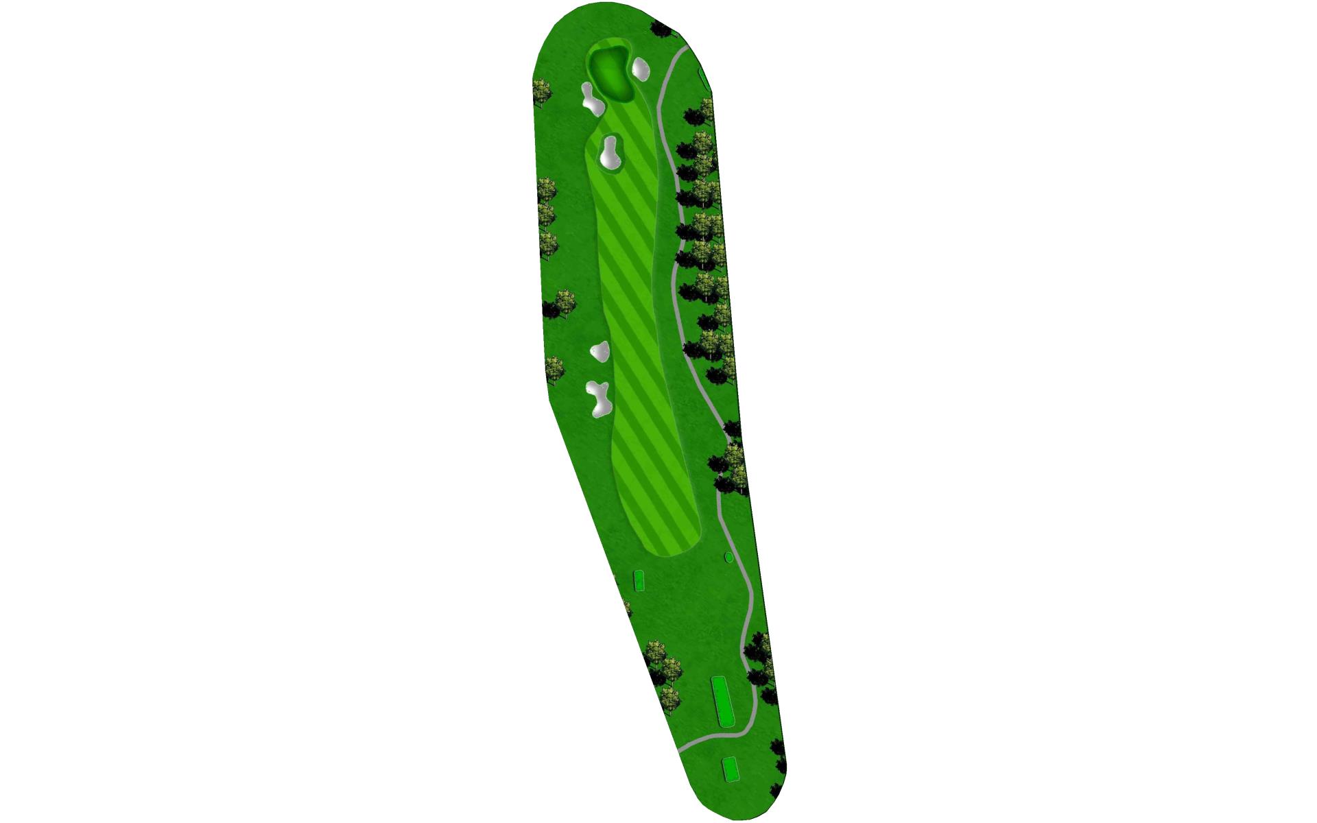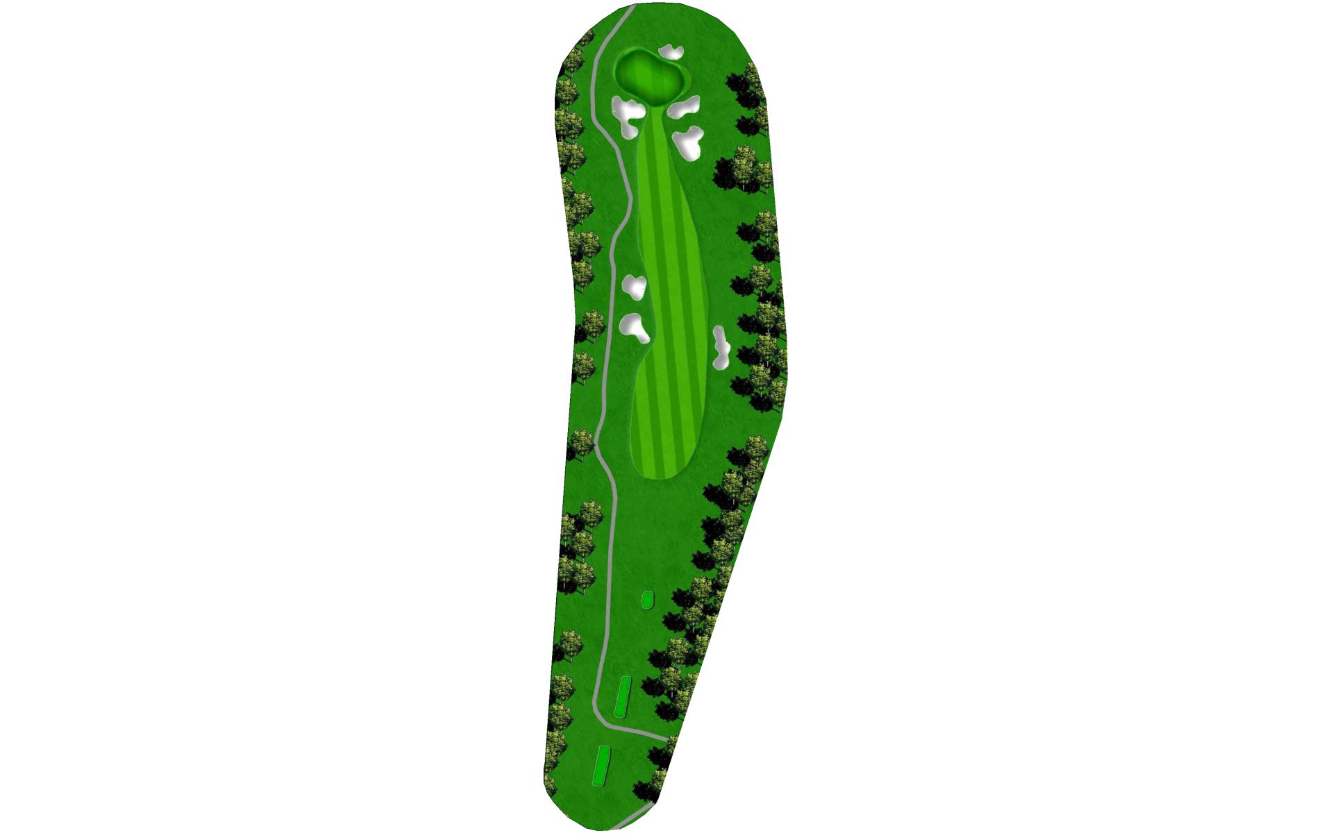 Be aware of a ridge in the middle of the green that will feed balls left and right.