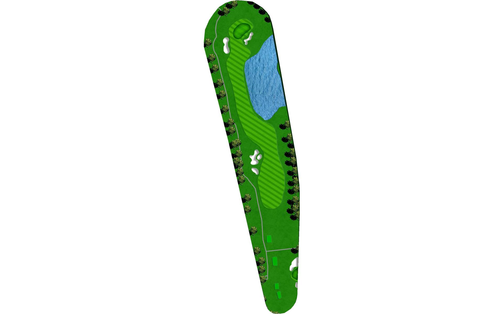 The second most difficult hole on the course is a long dog leg right par 4 with a downhill tee shot that must favor the right side of the fairway for the most ideal approach. Careful not to go too far right off the tee as the lake will swallow most shots heading that way. The putting surface is guarded by marsh land on the left side along with bunkers surrounding the green itself. A good tee shot will leave the player with a long to mid iron into this green.