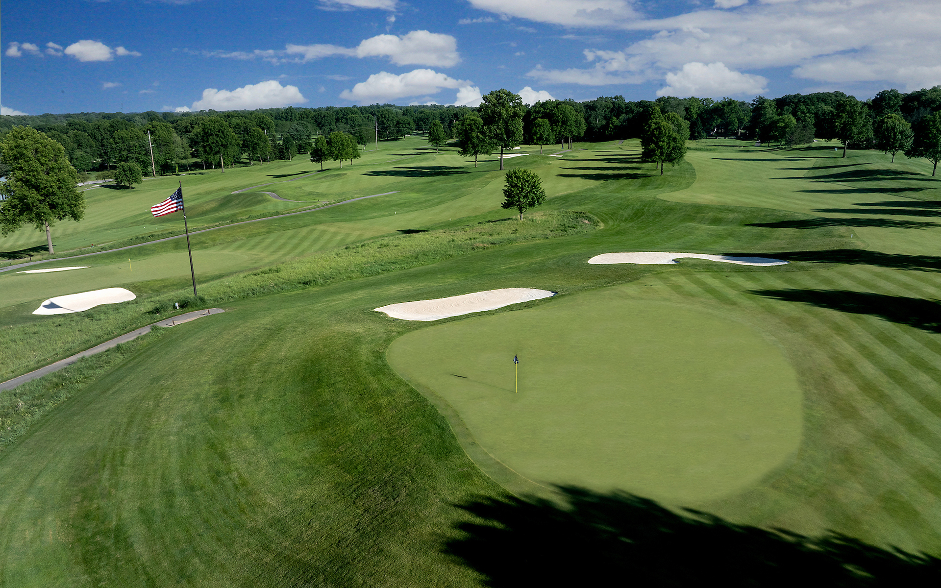 Formerly the West Course, the links-style, 18-hole Fazio Course features breathtaking views of the lush, rolling Firestone landscape. Redesigned by Tom Fazio Architects in 2021, the Fazio Course winds around the famed South Course and is home to the annual Ohio Senior Open.