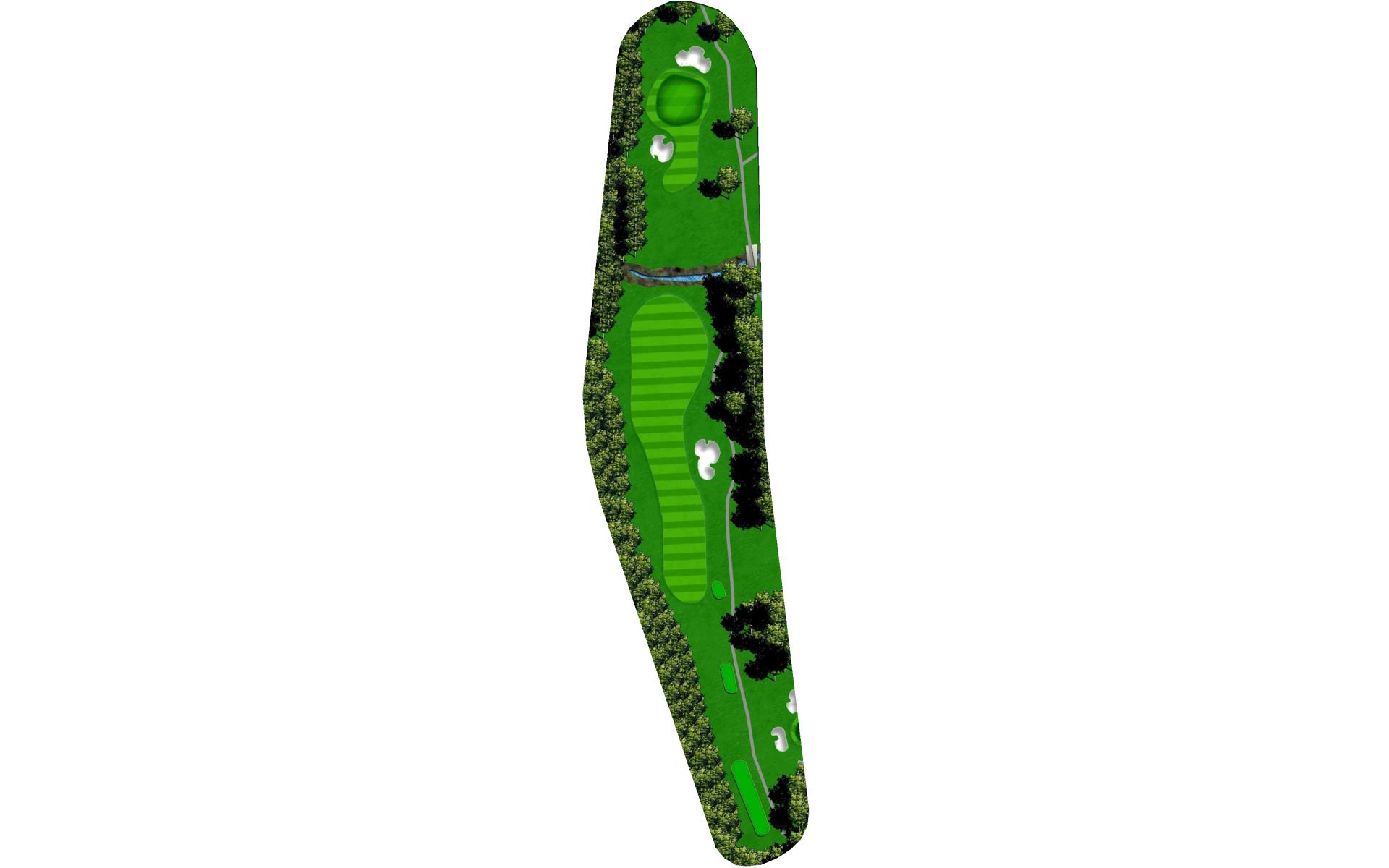 This long par 5 will require a accurate 3rd to a small green. Laying up to your favorite distance is the key.