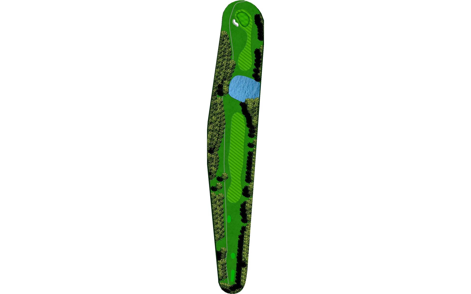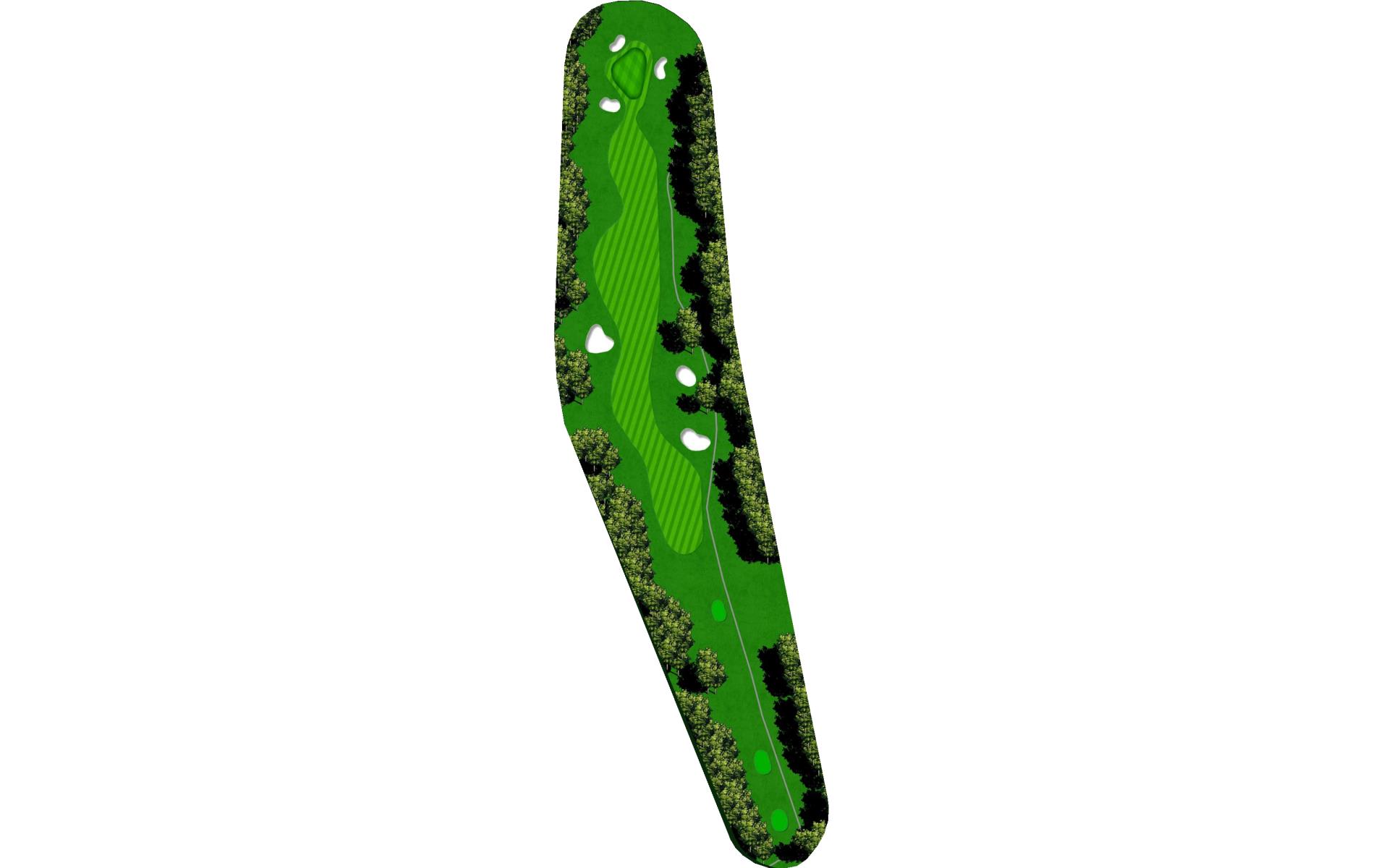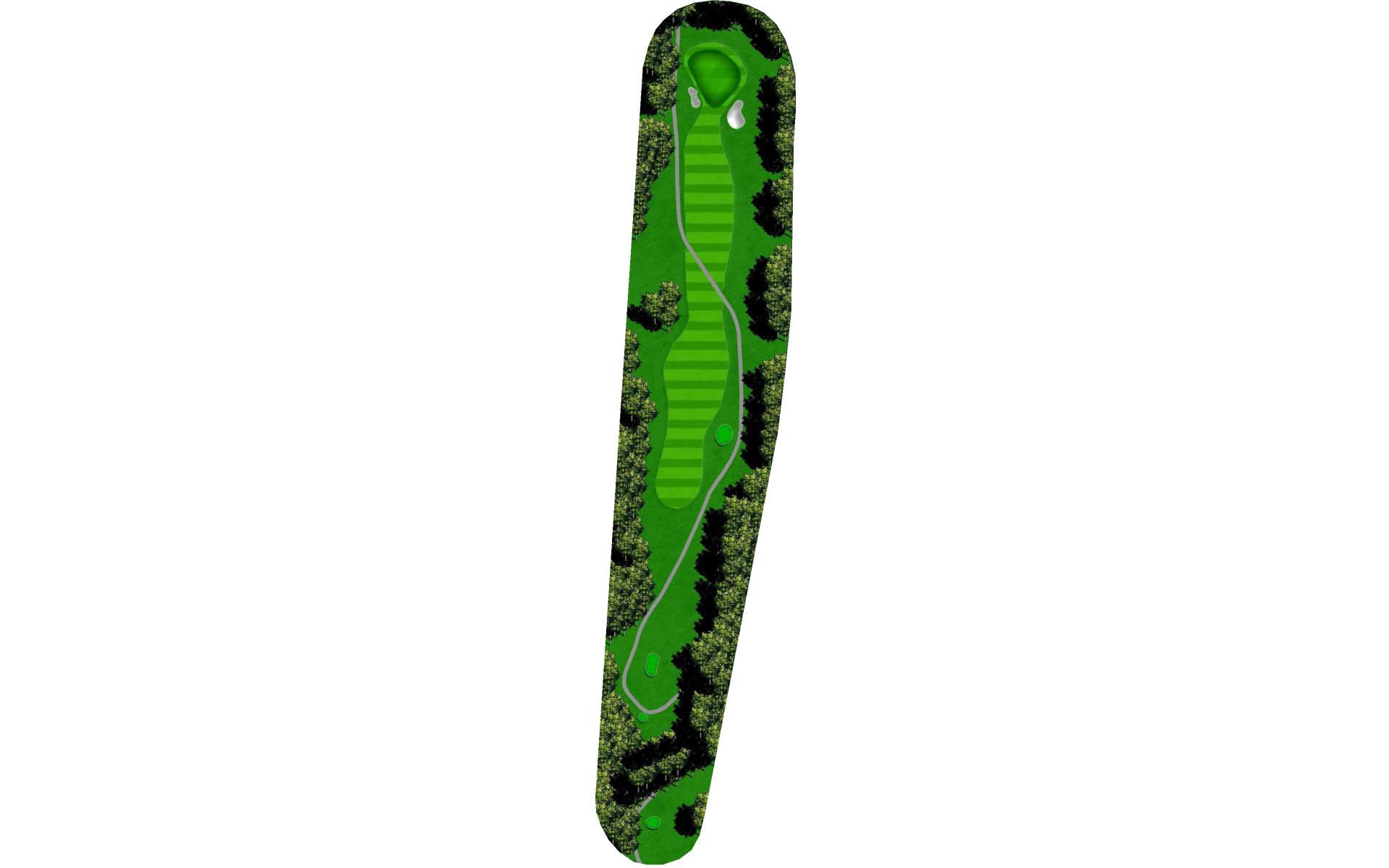 A long straight forward par 4. The hardest thing on this hole is to hit enough club on the approach. The uphill approach requires almost 1 ½ clubs more. The green slopes from back right to front left more severely than you may first think.