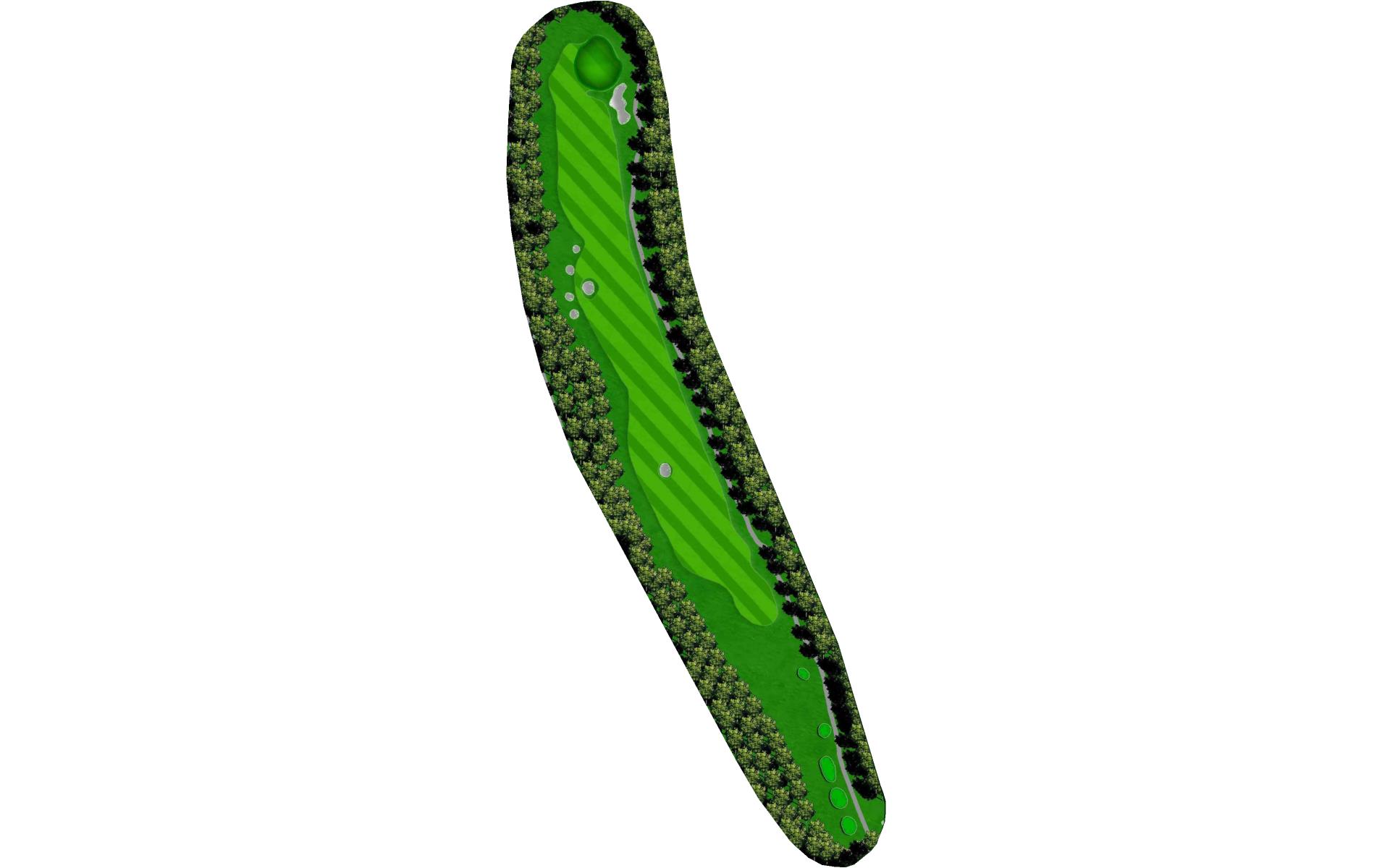 Players must thread the needle on the tee shot of this dogleg left par 4. If used properly, the fairway slope can be used to gain a little extra distance. A good approach shot is to the middle of the green on this multiple sloped putting surface.