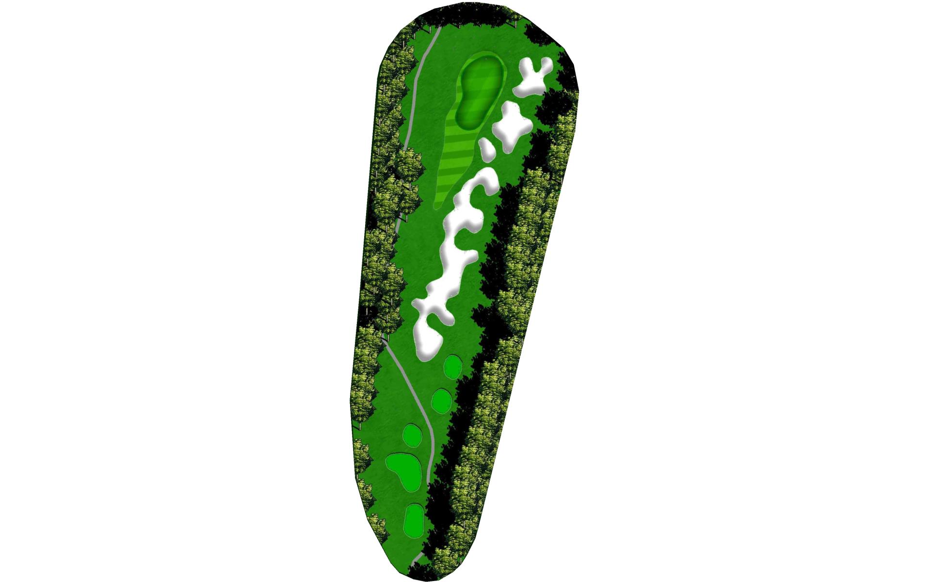 The ideal ball flight off the tee on this par 5 is slightly left-to-right. There’s a split fairway that’ll help with a wayward shot for those going for the green in two. Another pot bunker, as well as a false front, protects this undulated green.