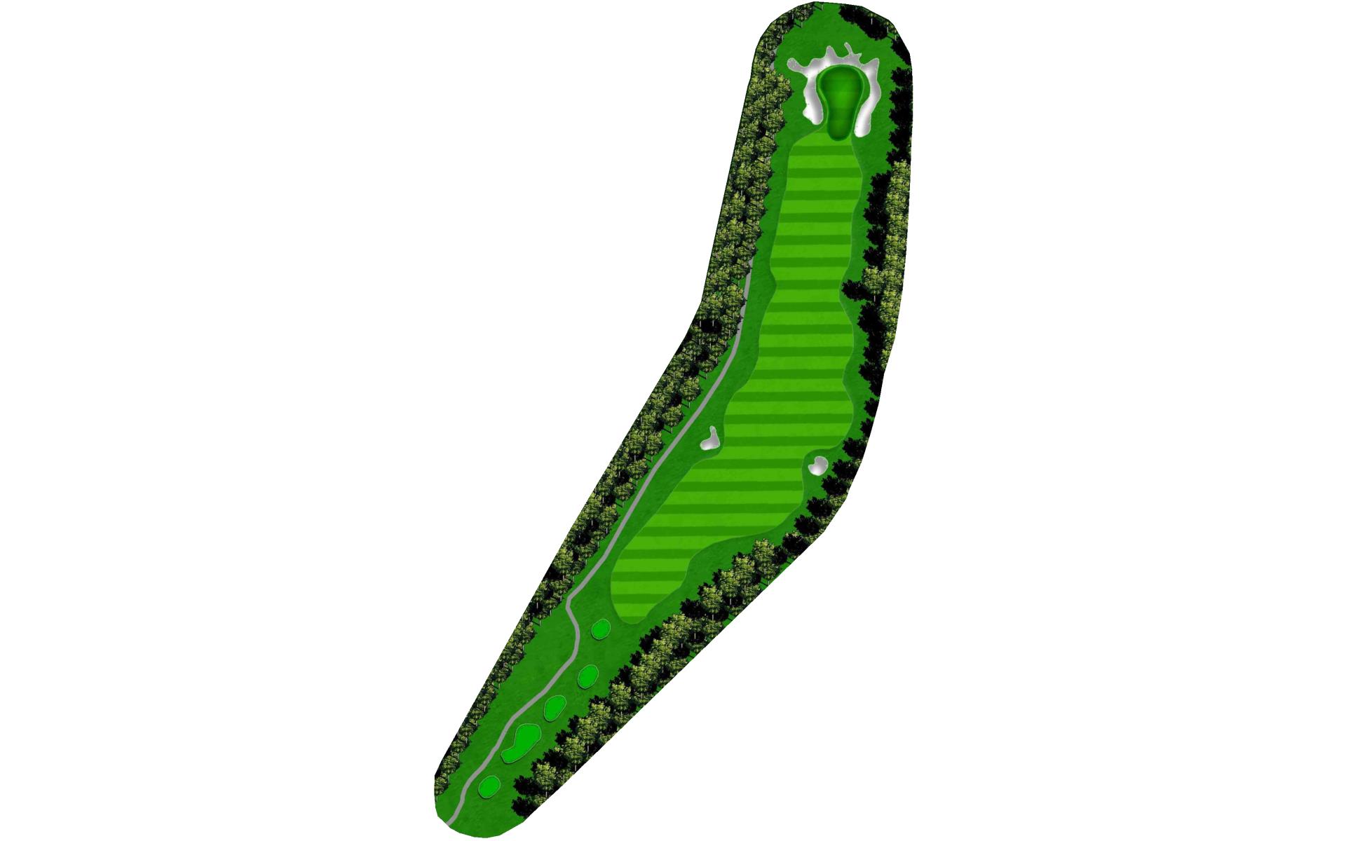 The first of five par 3s, the second plays longer than the yardage might suggest. Players will want to stay below the hole as there is a subtle slope that makes downhill putts tricky.